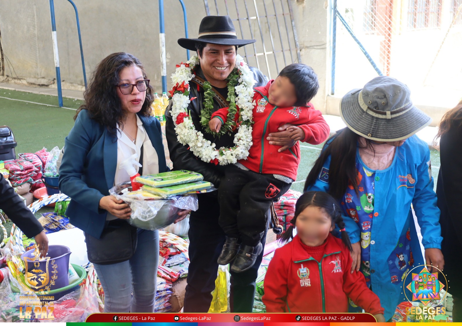 El gobernador M.Sc. Santos Quispe Quispe, a traves del Secretario Genreral, en coordinación con el Servicio Departamental de Gestión Social y el Programa de Atención Integral a la Primera Infancia, realiza la entrega de alimentos, material de limpieza, material recreativo, prendas de vestir y útiles educacionales en beneficio de la primera infancia que participan en los centros infantiles del departamento de La Paz.