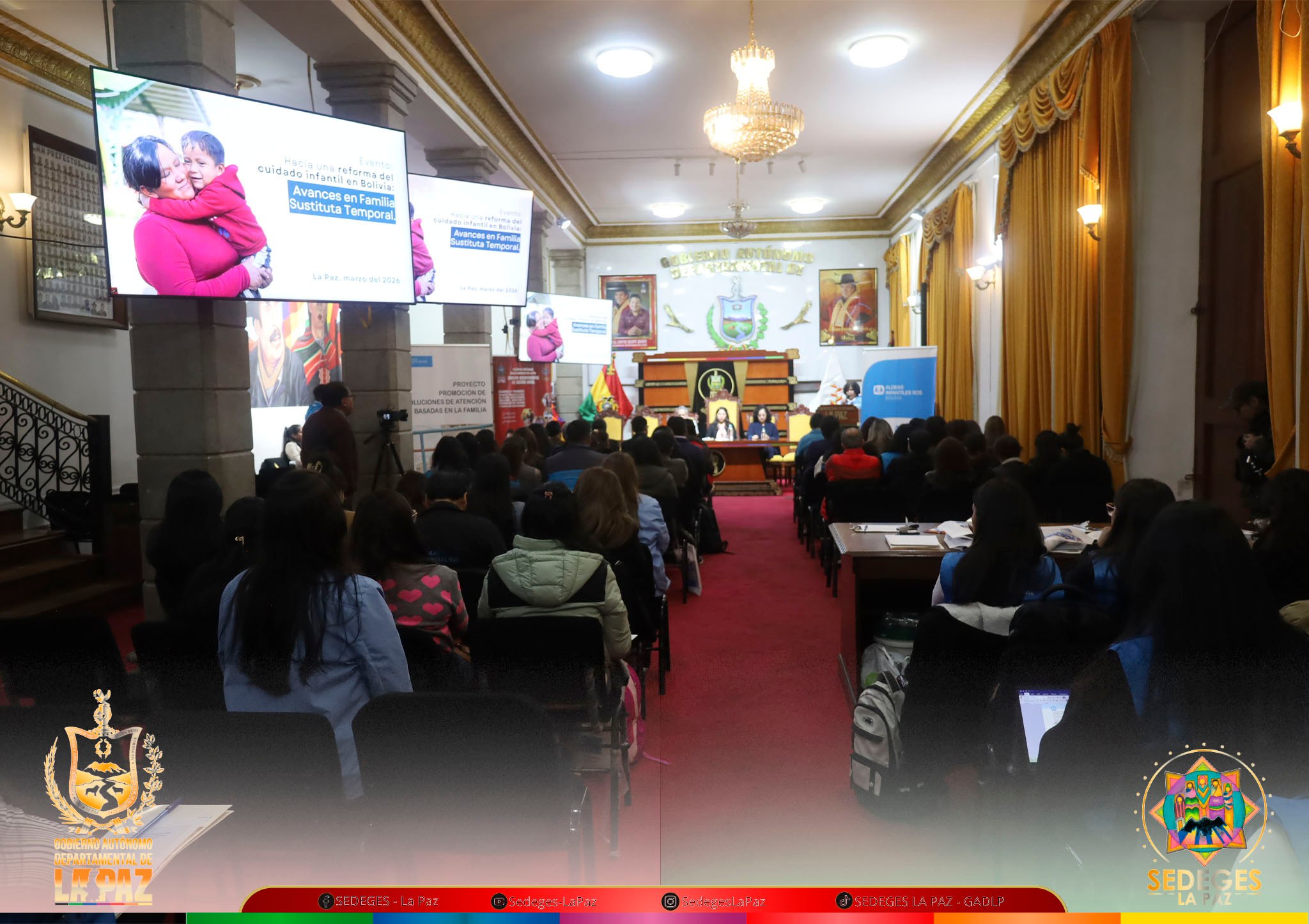 Con la presencia de autoridades departamentales y representantes de diferentes sectores, se inauguró hoy el Encuentro Nacional: "Hacia una Reforma del Cuidado de la Niñez y Adolescencia: Avances en Familia Sustituta Temporal", organizado por el Servicio Departamental de Gestión Social (SEDEGES) y Aldeas Infantiles SOS Bolivia.