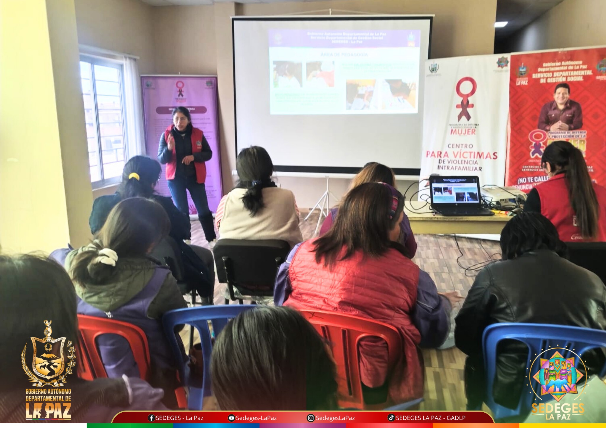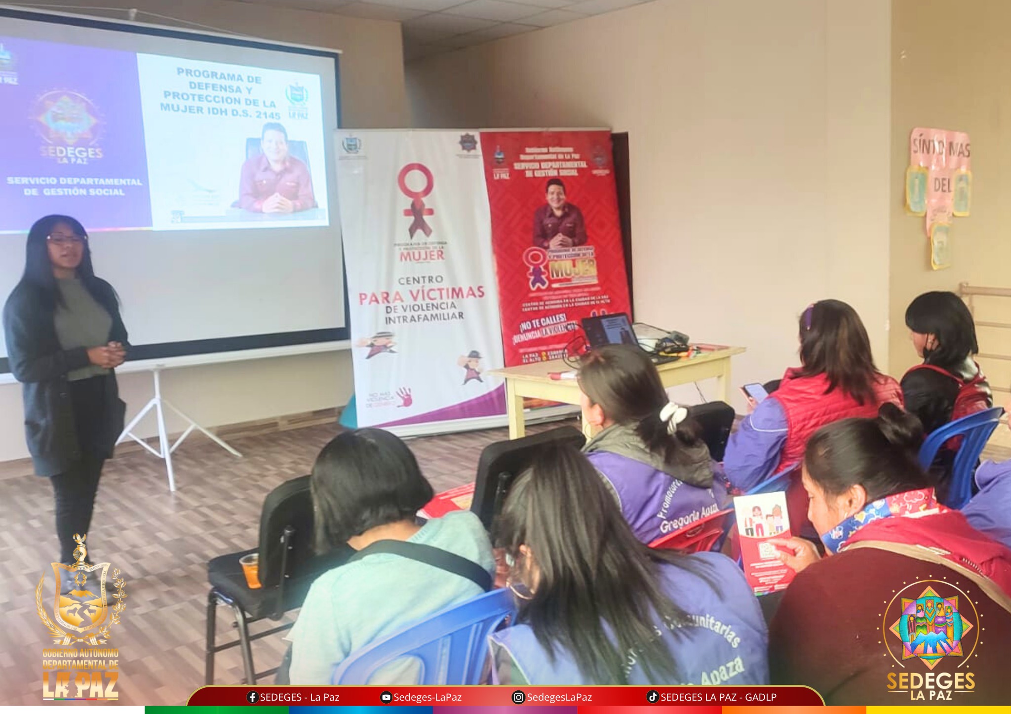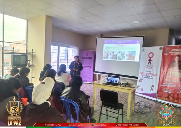 En un esfuerzo continuo por brindar atención integral a mujeres víctimas de violencia y sus dependientes, el Programa de Defensa y Protección de la Mujer - IDH, establecido bajo el Decreto Supremo 2145, realiza el taller informativo sobre los servicios que brinda el Programa dirigido a las Promotoras Comunitarias Gregoria Apaza.